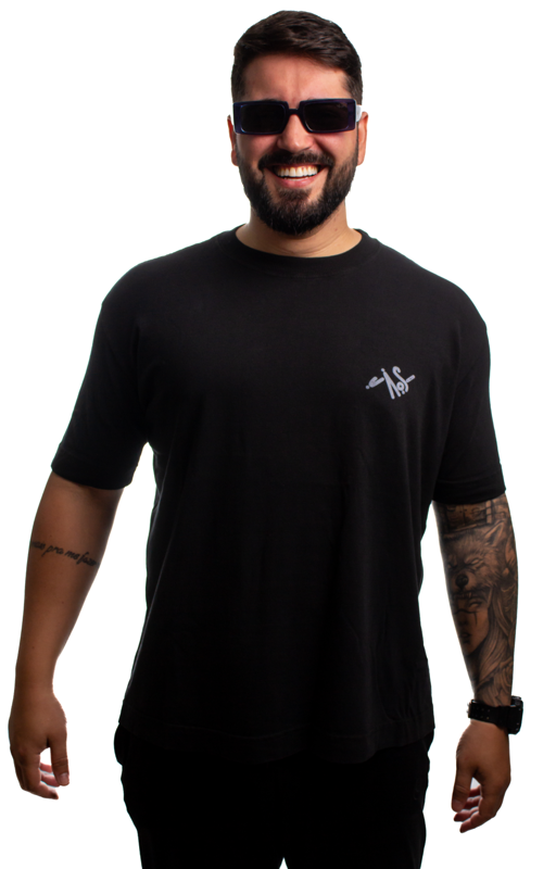 Aquela camiseta mais pesada e um pouco mais caótica! Altura do modelo: 1,85m | Tamanho: GG